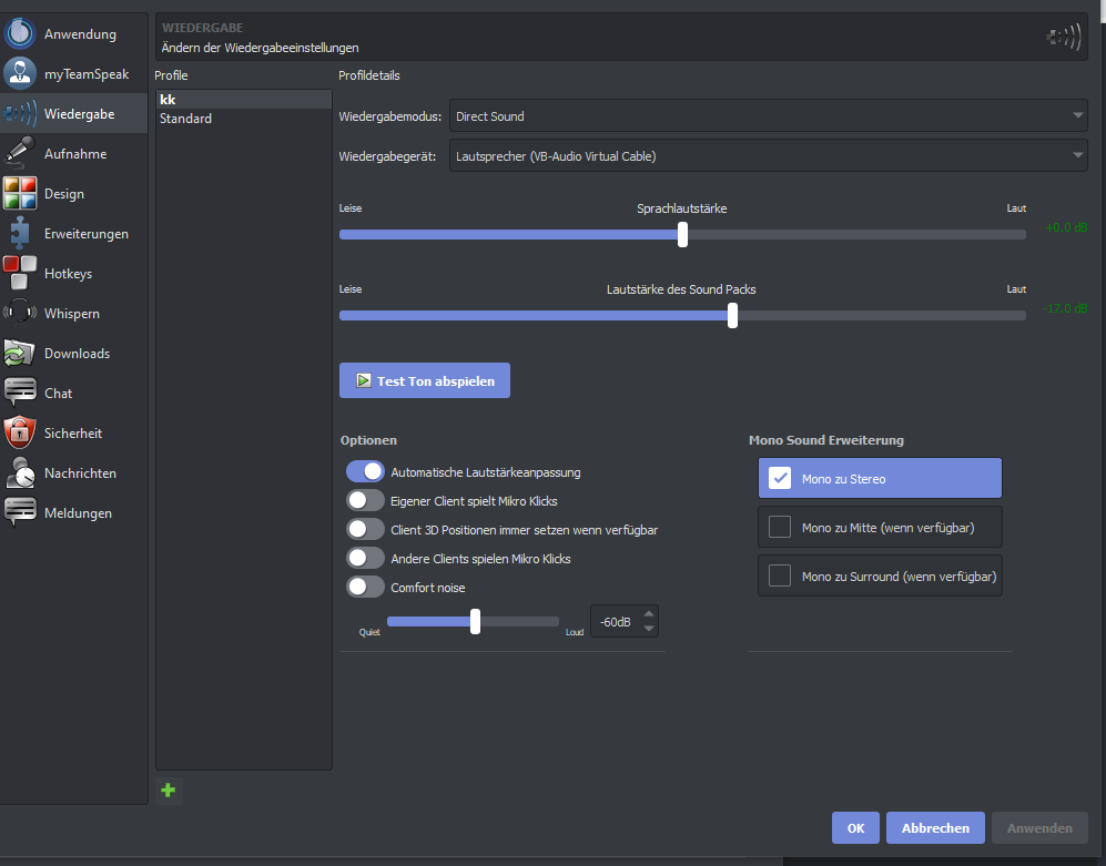 Außerdem ist es wichtig, im TS3 Hintergrundgeräusche entfernen und den ganzen anderen rotz auszuschalten.