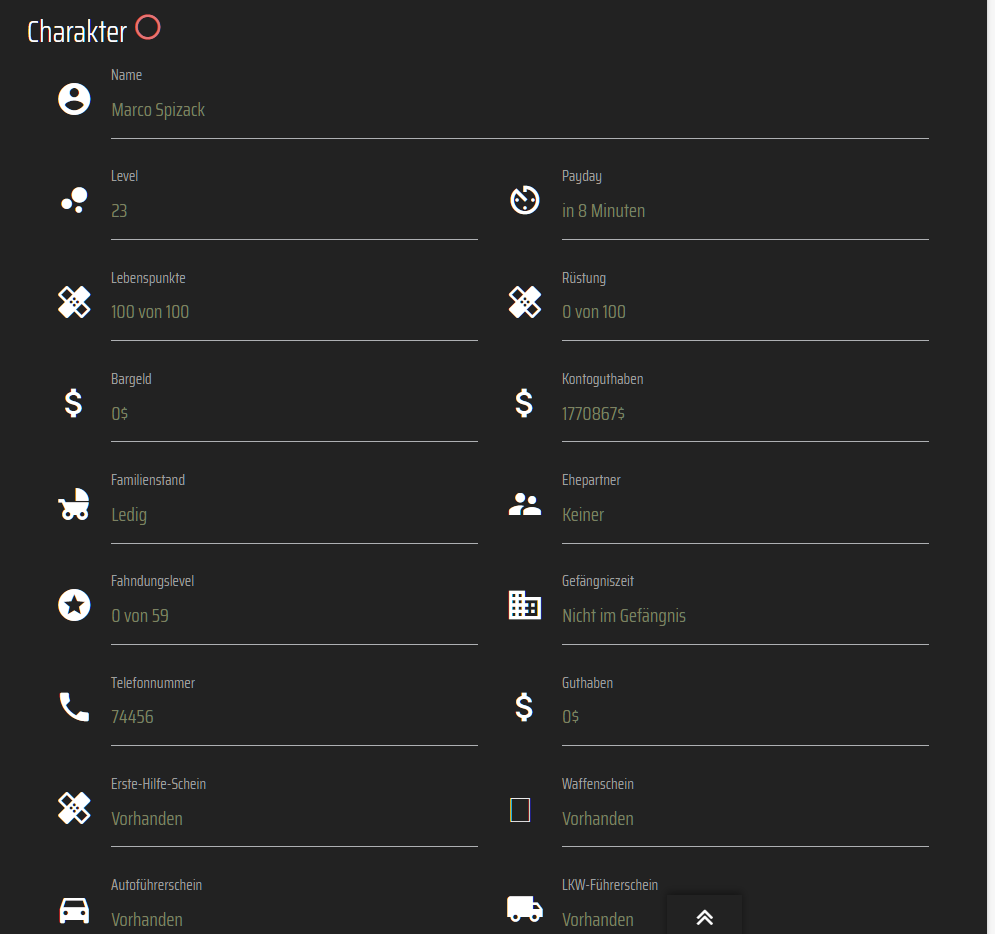 | LSPD | Rang 5 | 06.2020 | 01.2022 | Brauchte Urlaub |