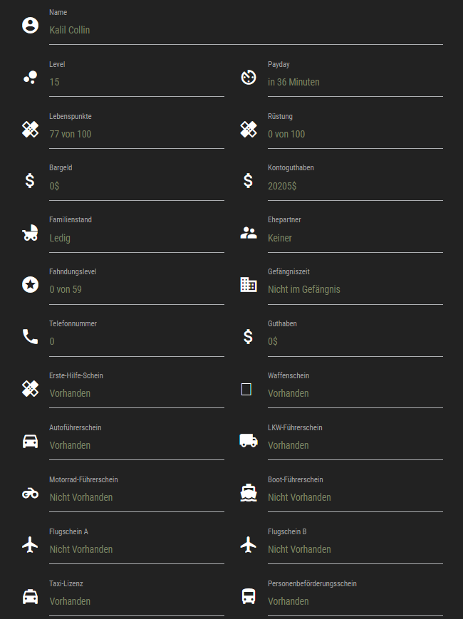 PKW, Waffenschein, Erste Hilfe Schein (Bitte die Charakterübersicht einsenden) ✅ |