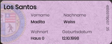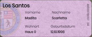 Personalien Name: Madita Weiss GWD - Note: - ( Austellung vorraussichtlich am 19.01.2020) Telefonnummer: 77171 Wohnort: Rockfort Sozialstufe: 35